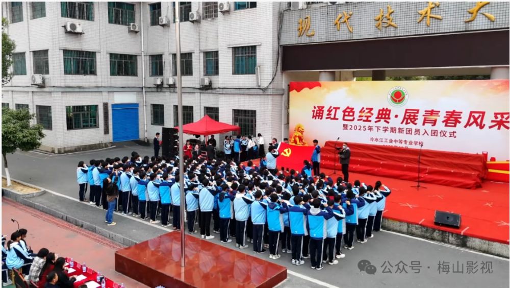 12月11日,冷水江工业中等专业学校举行新团员入团仪式暨“诵红色经典,展青春风采”朗诵展示活动,为全校师生呈现了一堂沁润人心的思政实践盛宴。